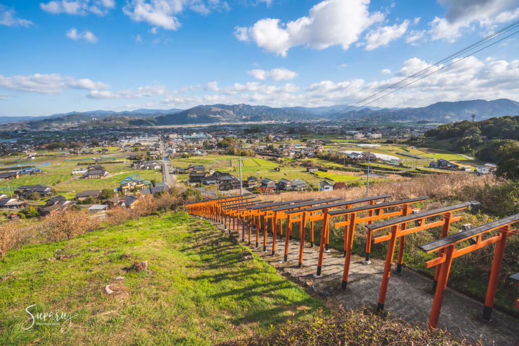 จุดเด่นของศาลเจ้าแห่งนี้ก็คือ โทริอิจำนวนมากถึง 91 เสา ทอดยาวขึ้นไปยังเนินเขา ซึ่งเมื่อขึ้นไปถึงด้านบนสุด สามารถมองลงมาเห็นวิวของที่ราบ Tsukushi และเมือง Ukiha ได้แบบพาโนรามา สวยงามมาก ๆ เลย ชาวญี่ปุ่นมักจะเดินทางมาขอพรให้การค้าขายเจริญรุ่งเรือง พืชผลทางการเกษตรอุดมสมบูรณ์